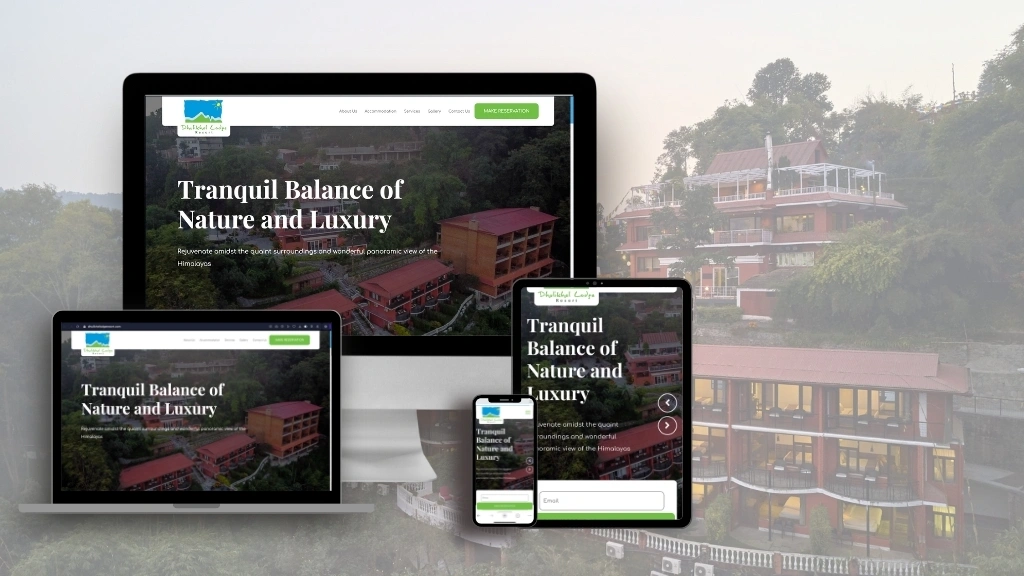 For the redevelopment of the Dhulikhel resort website, we selected WordPress and a custom theme approach to ensure a high-performing, elegant, and mobile-responsive design. Each element—from layout structure to typography and color palette—was handpicked to reflect the resort’s cultural essence and peaceful surroundings.